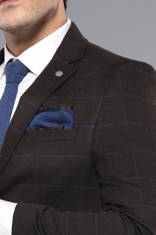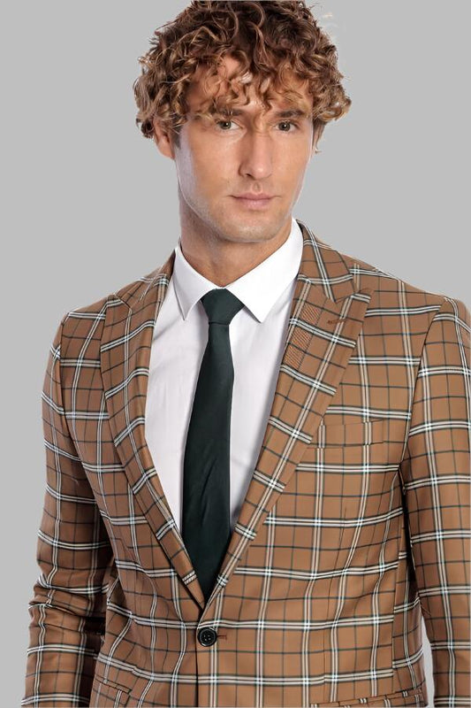 Slim Fit Peak Lapel Checked Grey Men Blazer