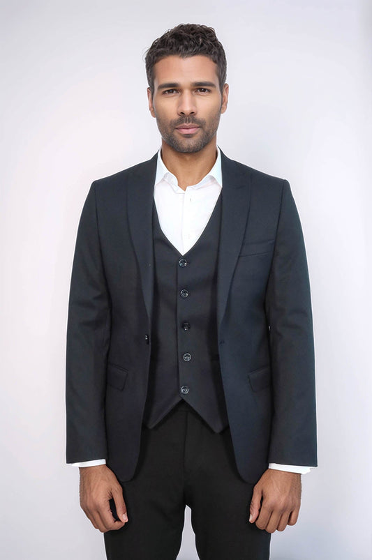 Black Textured Gold Metal Button Slim Fit Men's Blazer Jacket