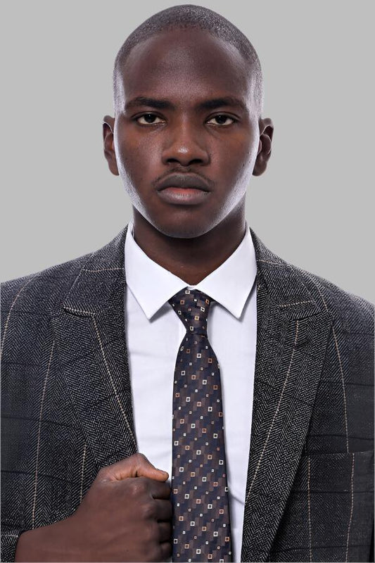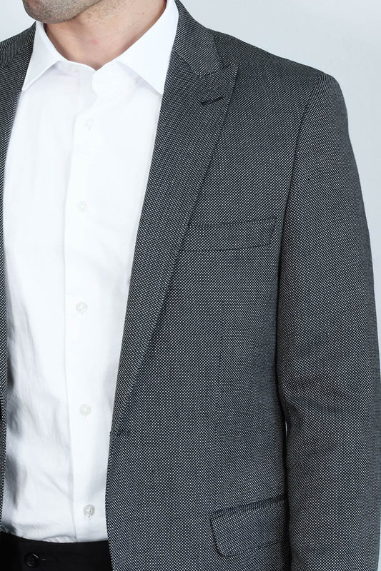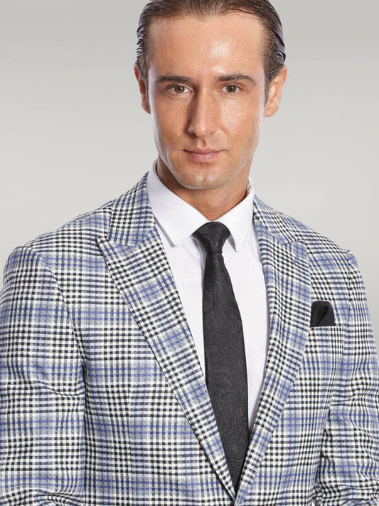 Checked Peak Lapel Slim-Fit Dark Grey Men Blazer -