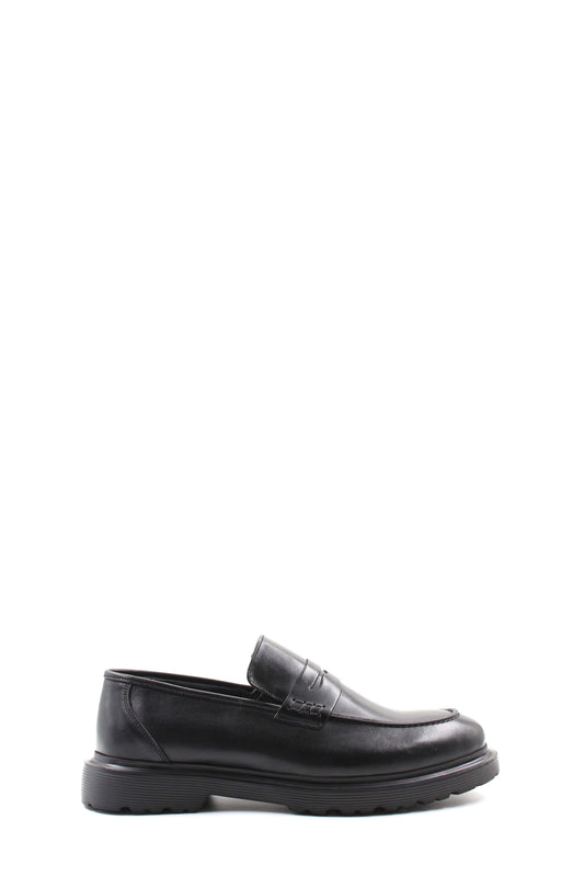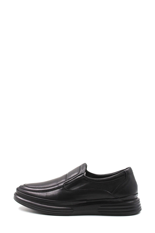 Men's Black Textured Leather Slip-On Loafers with Cushioned Sole