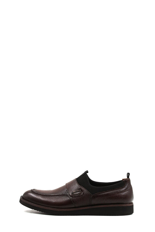 Men's Brown Leather Slip-On Loafers with Decorative Buckle