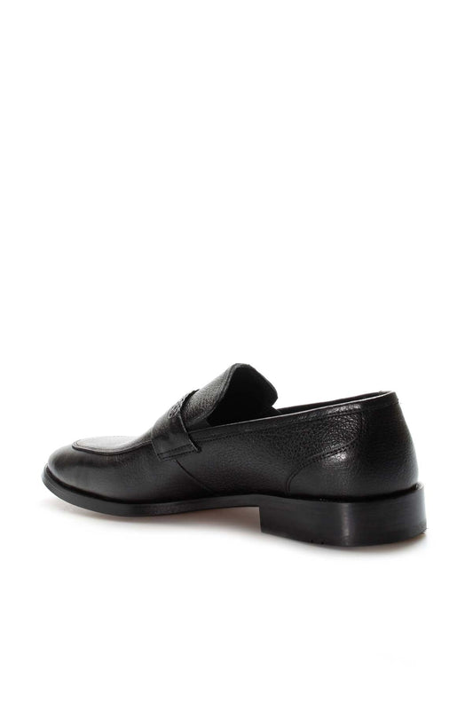 Men's Black Leather Formal Loafers-Wessi