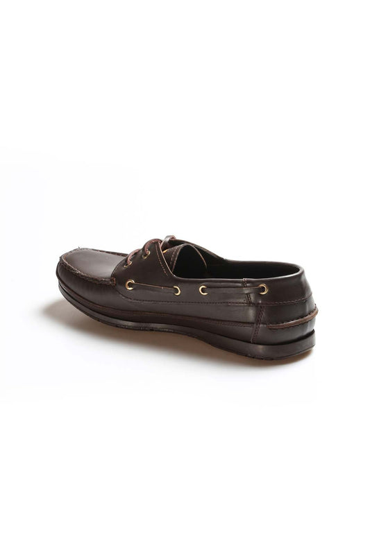 Men's Brown Leather Boat Shoes with Brass Eyelets