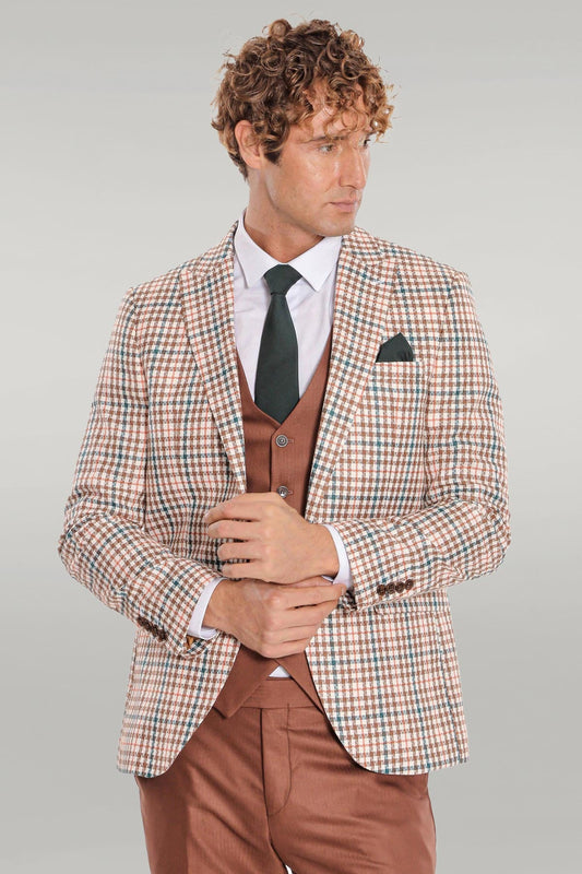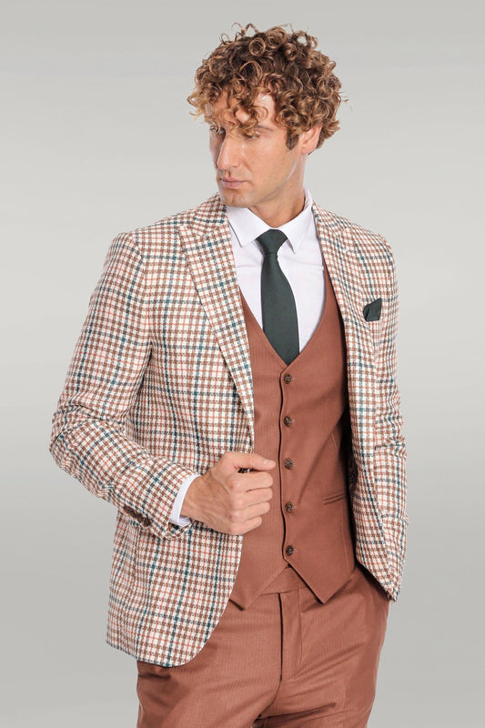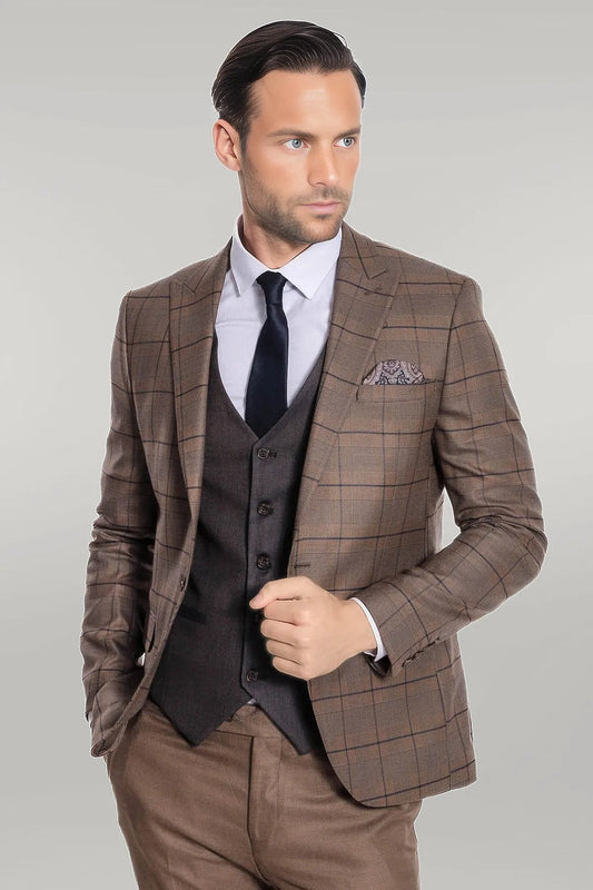 Slim Fit Checked Patterned Brown Men Suit