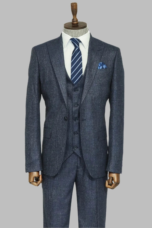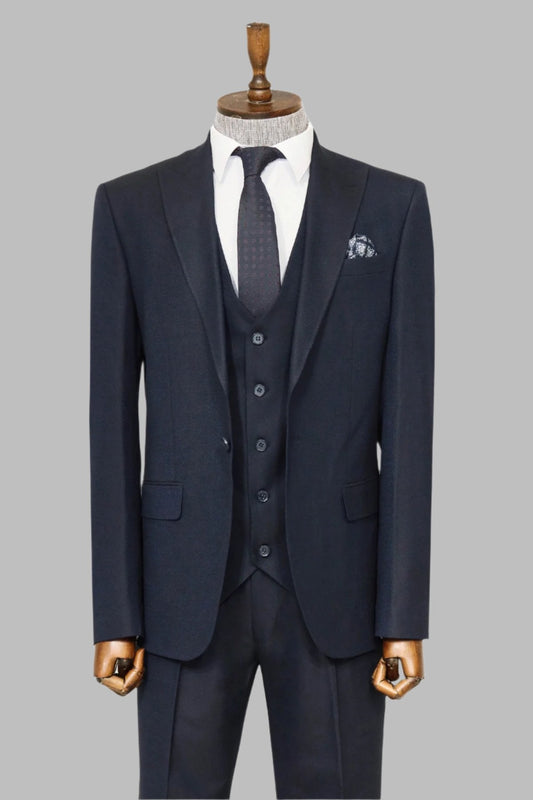 3 -Piece Single Button Peak Lapel Dark Blue Men Suit