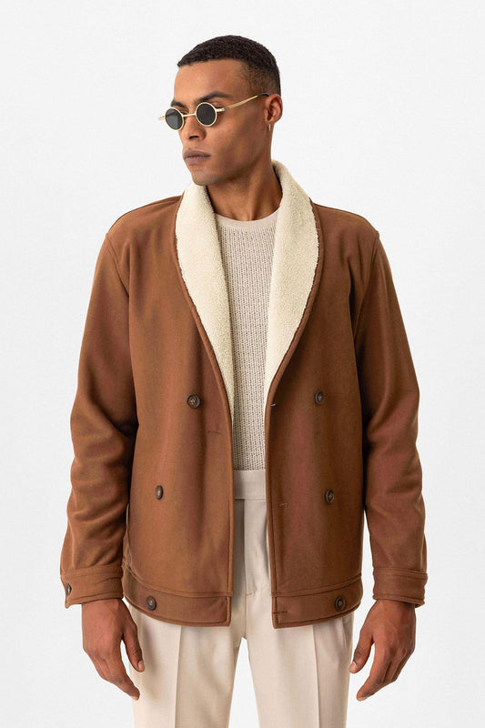 Tan Contrast Collar Men's Jacket with Lining Detail