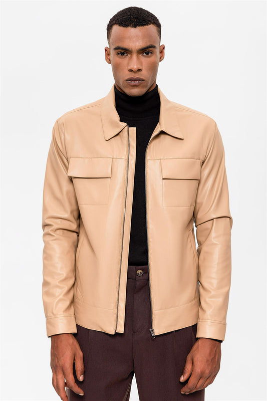 Men's Ecru-Mink Vizon Linen Blend Double-Breasted Jacket