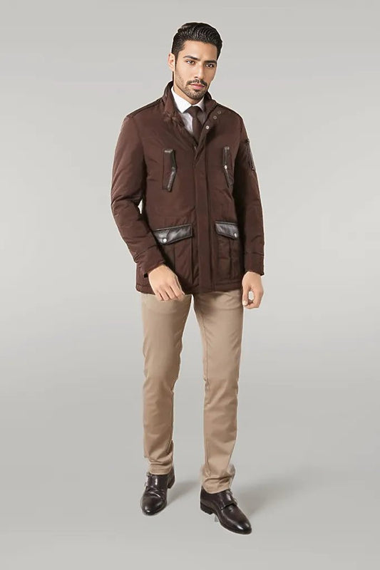 Leather Modeled Dark Brown Slim Fit Quilted Jacket