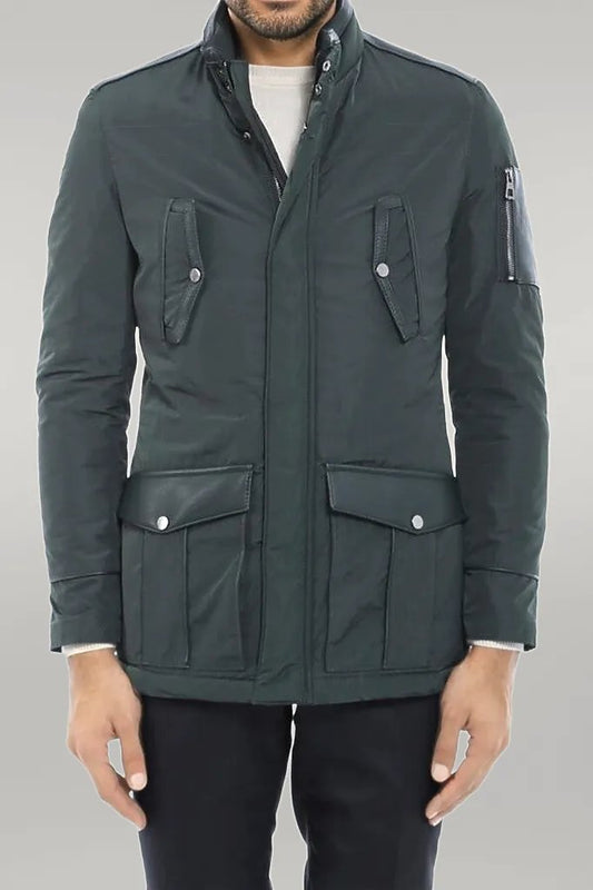 Leather Modeled Green Slim Fit Quilted Jacket