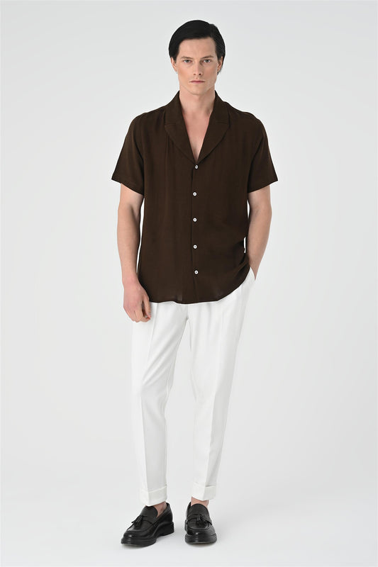 Jacket Collar Men's Dark Brown Shirt -