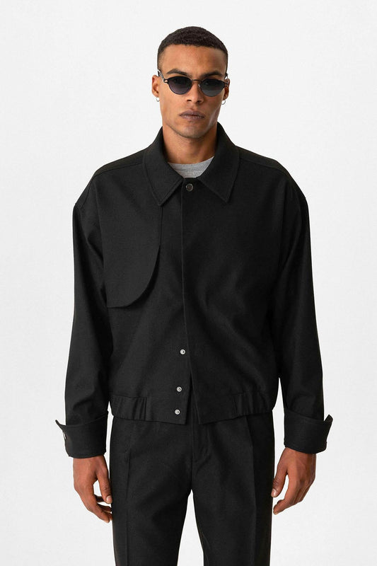 Double Buttons Bag Pocket Shoulder Piece Grey Jacket-Wessi