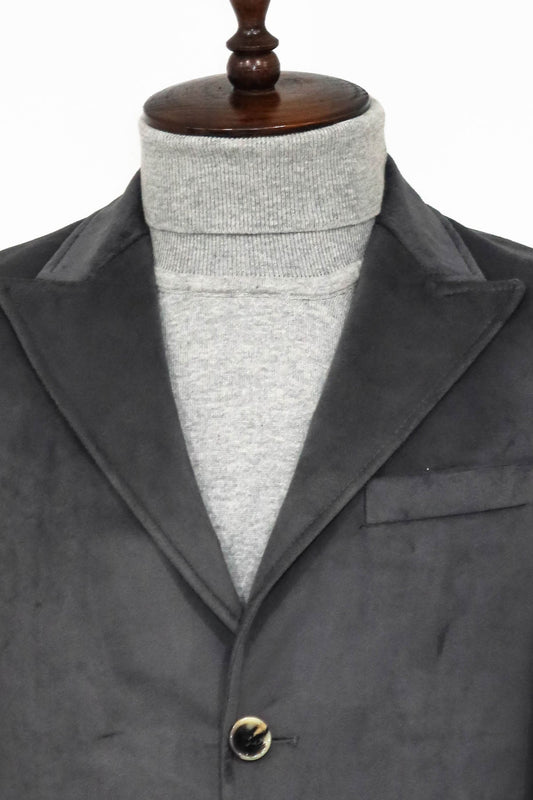 Suede Slim Fit Long Grey Men Coat
