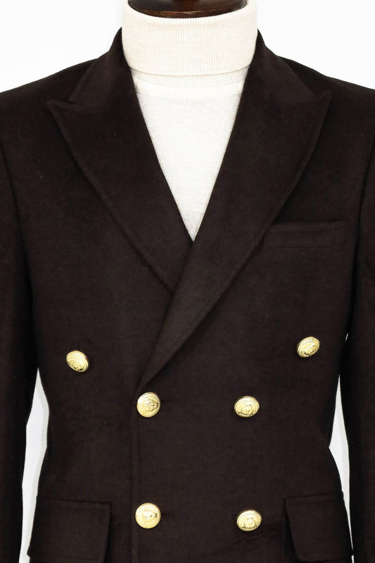 Brown Metal Buttoned Double Breasted Long Coat