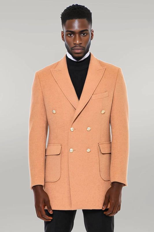 Metal Buttoned Double Breasted Tan Men Coat