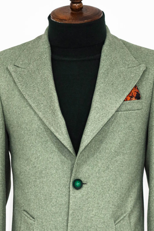 Wide Lapel Wool Oil Green Men Coat