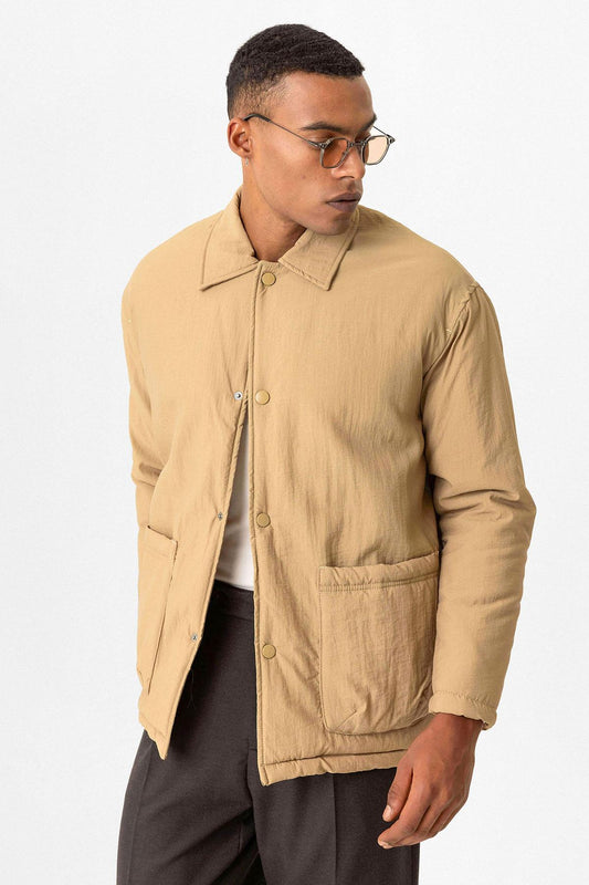 Taupe Lightly Padded Men's Jacket with Cargo Pockets