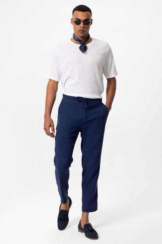 Men's Navy Blue Crew Neck Ribbed T-Shirt