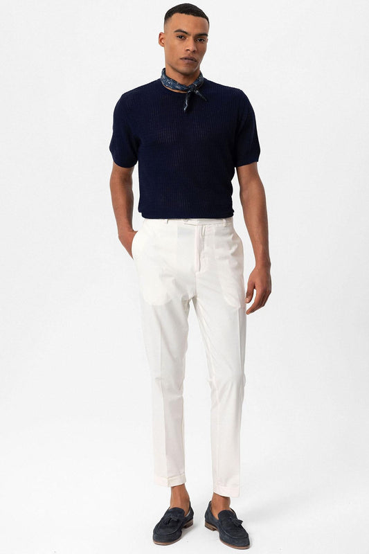 Men's Navy Blue Crew Neck Knit T-Shirt