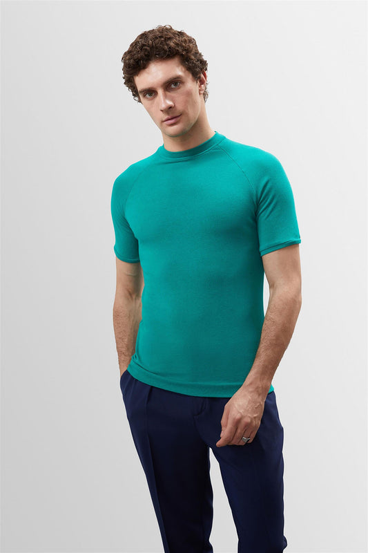 Men's Green Crew Neck Slim Fit Knitwear Sweater