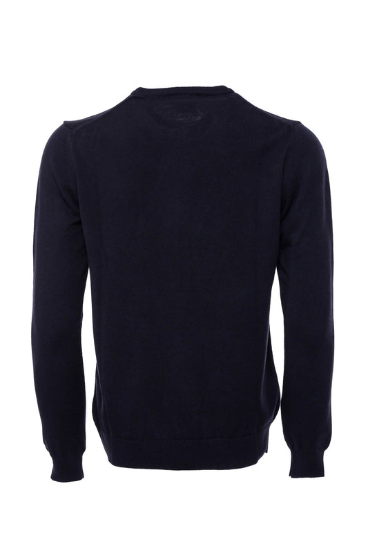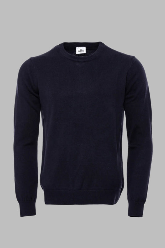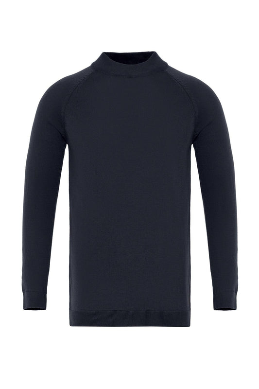 Navy Blue Crew Neck Embroidered Plain Knitwear