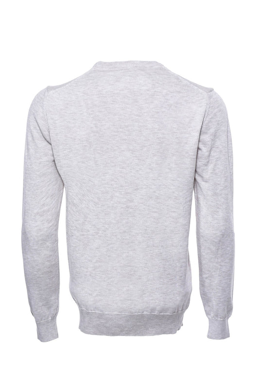 Crew Neck Knitwear Chest Patterned Over Grey