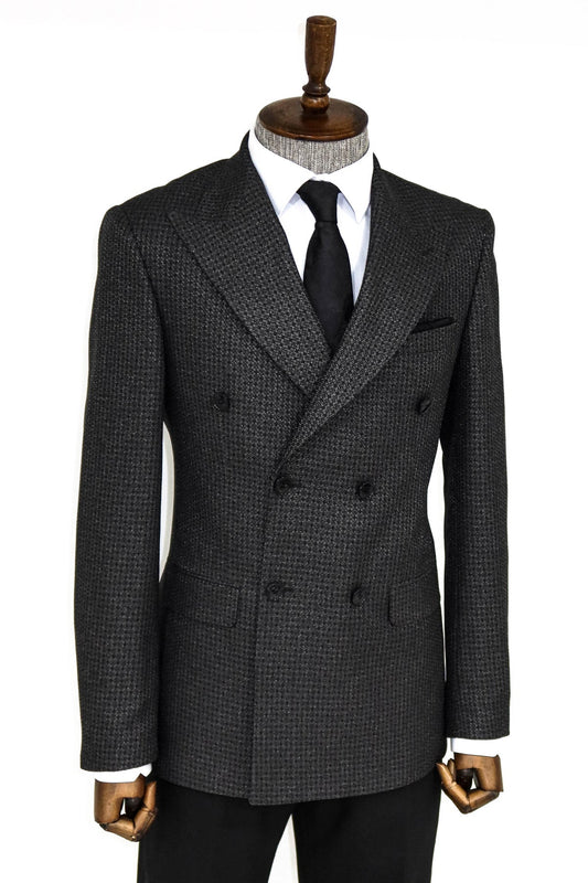 Houndstooth Patterned Grey Men Double Breasted Blazer