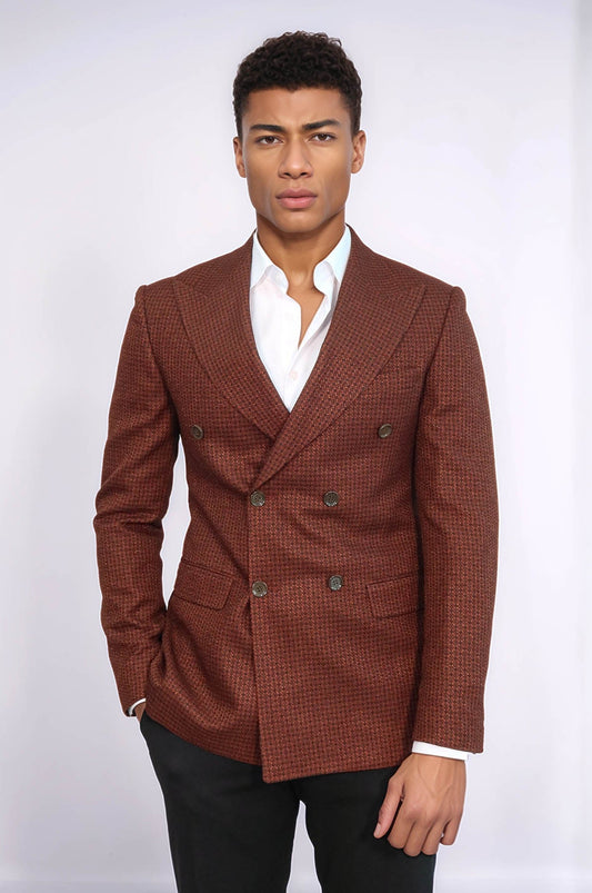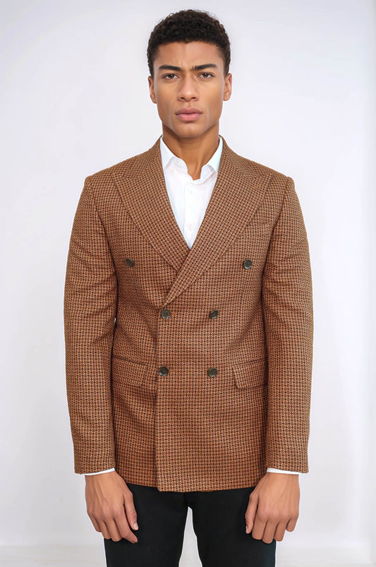 Houndstooth Patterned Tawny Men Double Breasted Blazer