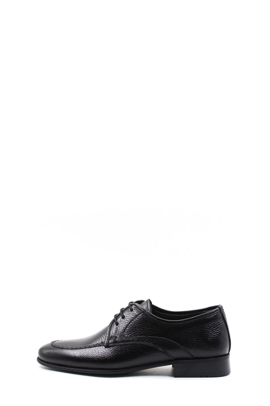 Men's Black Textured Leather Lace-Up Derby Shoes with Sleek Design
