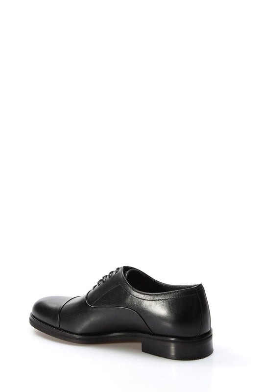 Men's Black Leather Oxford Shoes with Perforated Cap Toe