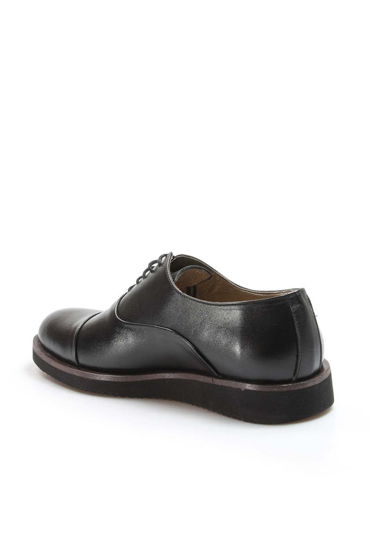 Men's Black Leather Oxford Shoes with Cushioned Sole and Matte Finish