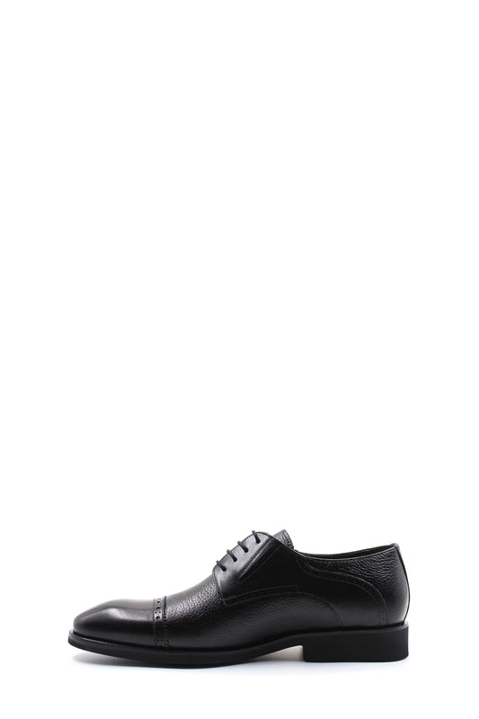 Men's Black Leather Derby Shoes with Subtle Stitch Detailing