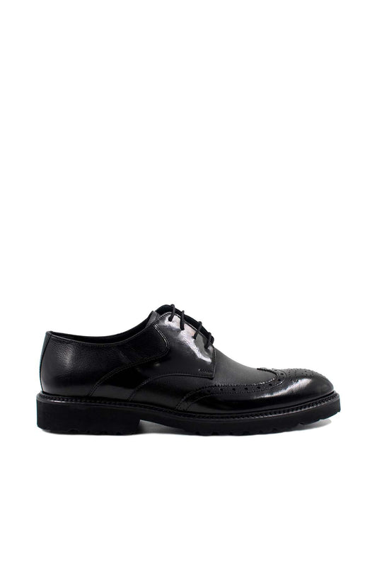 Men's Black Leather Brogue Shoes with Wingtip Detailing
