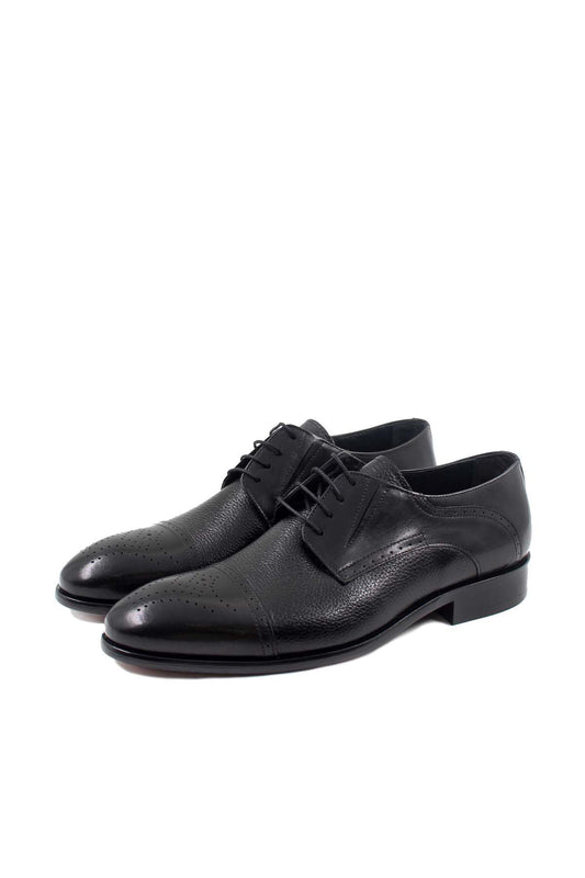 Men's Black Leather Oxford Shoes with Perforated Cap-Toe