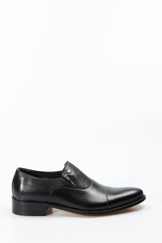 Men's Black Leather Slip-On Shoes with Cap Toe