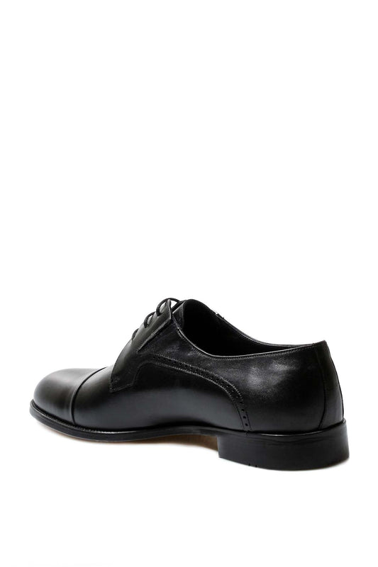 Men's Black Leather Oxford Shoes with Cap Toe and Glossy Finish