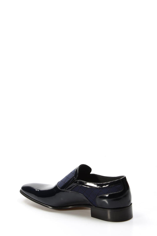 Men's Navy Patent Leather Slip-On Shoes with Quilted Detailing