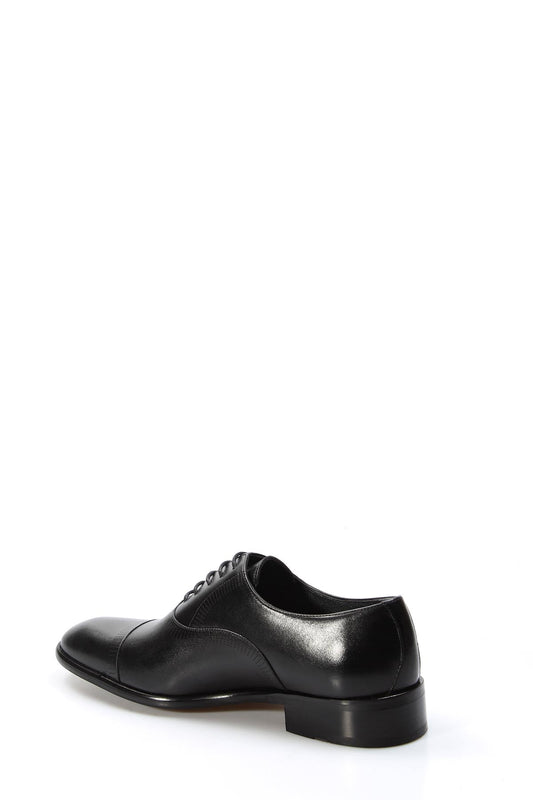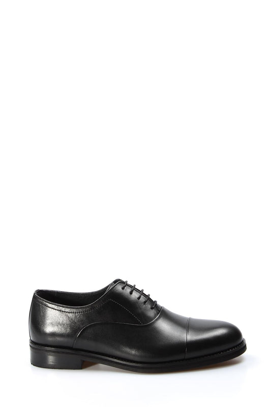 Men's Black Leather Cap-Toe Oxford Shoes