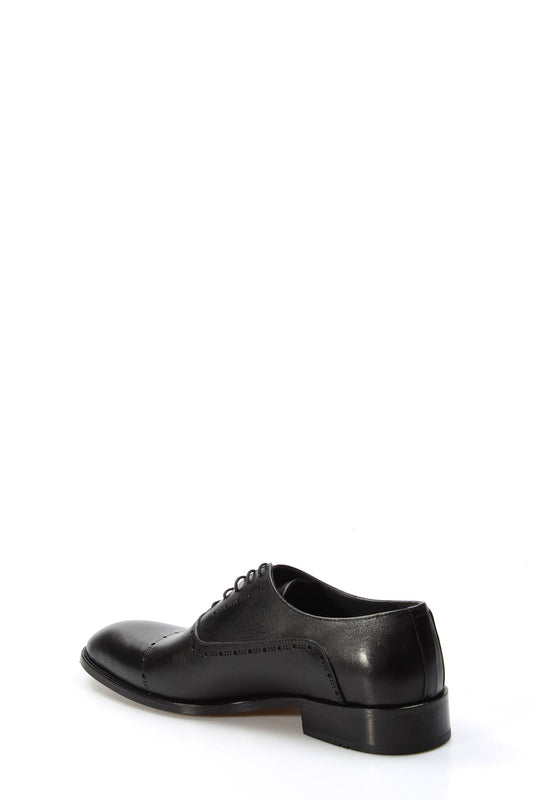 Men's Black Leather Oxford Shoes with Perforated Cap-Toe