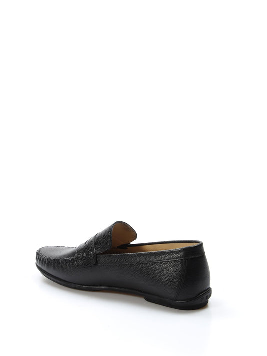 Men's Black Leather Penny Loafers with Hand-Stitched Detailing