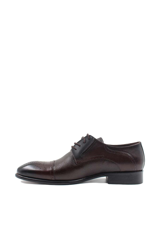 Men's Brown Leather Oxford Shoes with Textured Finish and Brogue Detailing