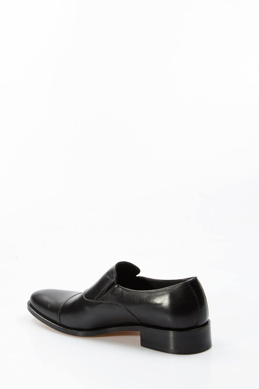 Men's Black Leather Slip-On Shoes with Cap Toe