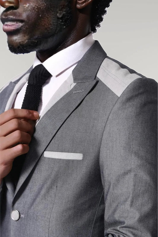 3 Pockets 2 Buttons Cross Piping Grey Jacket-Wessi
