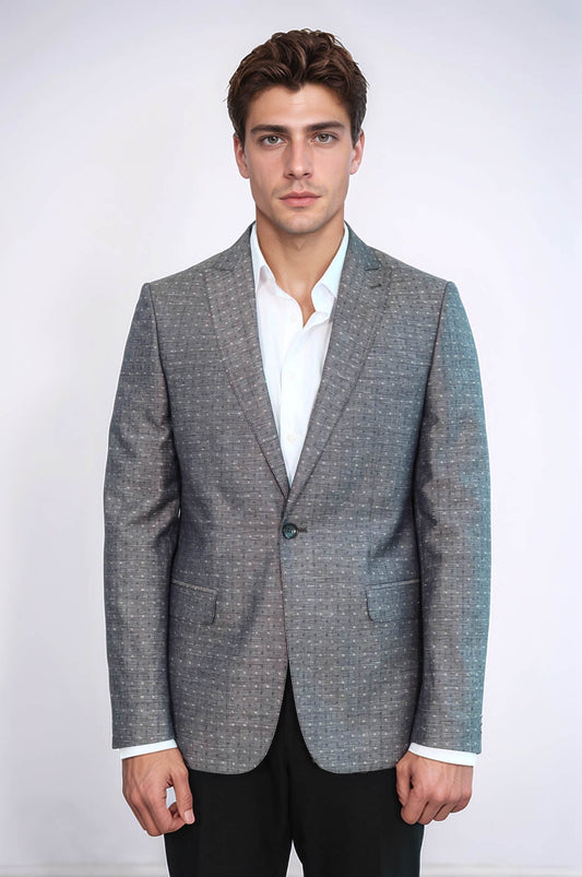 Textured Slim Fit Peak Lapel Grey Men Blazer
