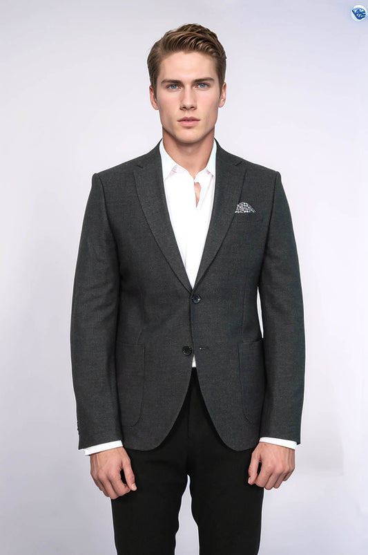 Textured Slim Fit Peak Lapel Anthracite Men Blazer