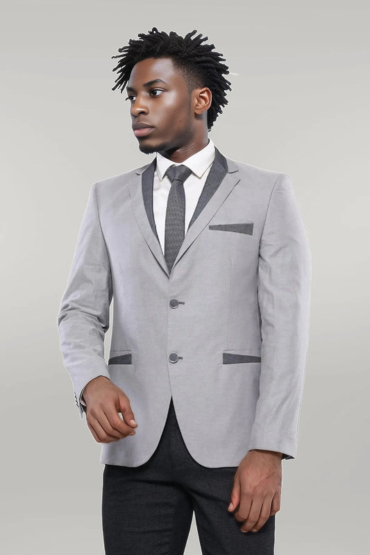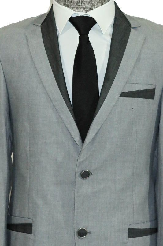 3 Pockets 2 Buttons Cross Piping Grey Jacket-Wessi