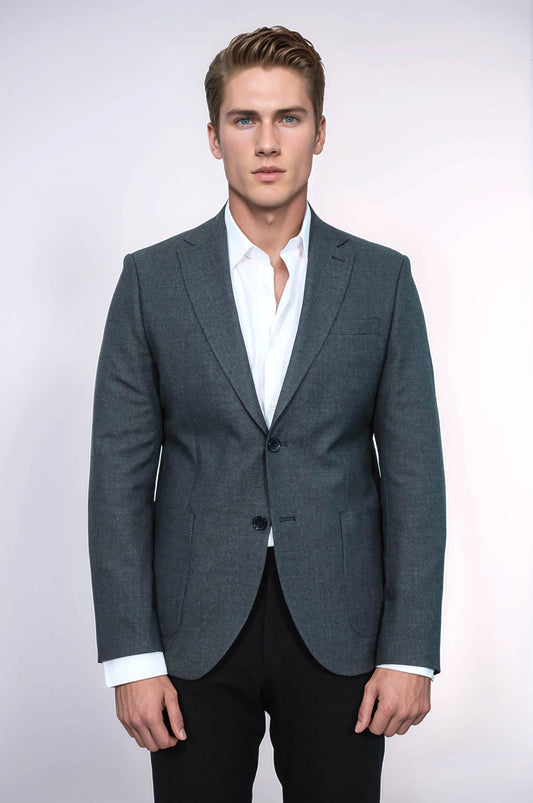 Slim Fit Plain Wide Lapel Grey Men Wool Blazer