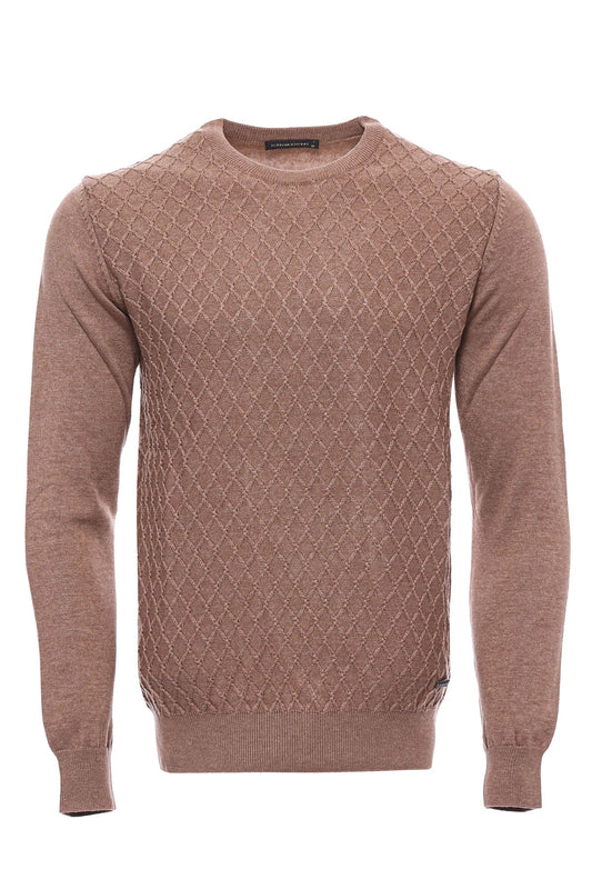 Camel Crew Neck Knitwear Asymmetric Patterned