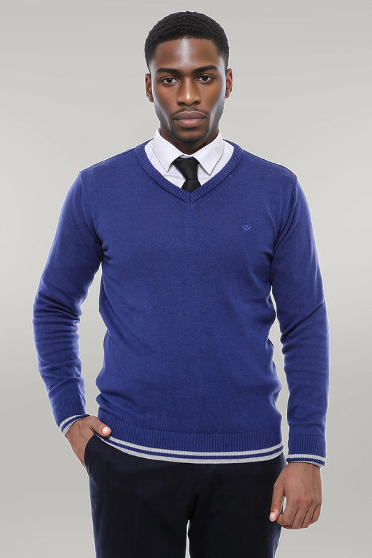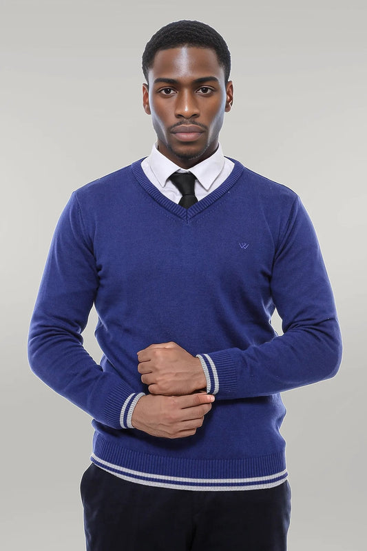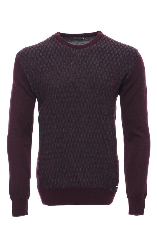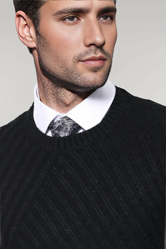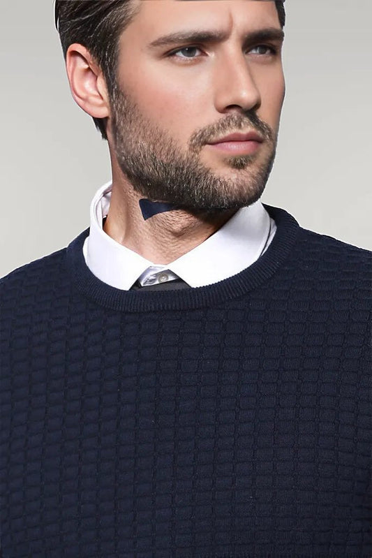 Navy Blue Diamond Patterned Circle Neck Sweater