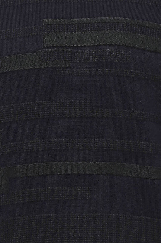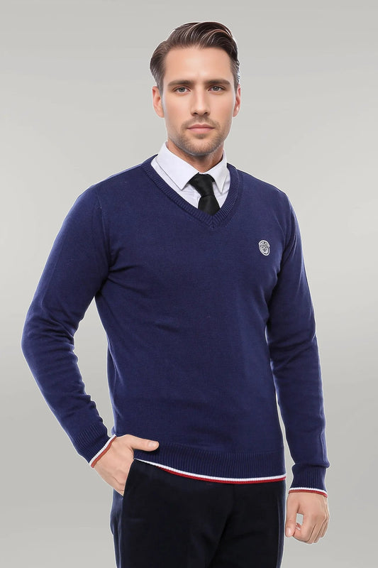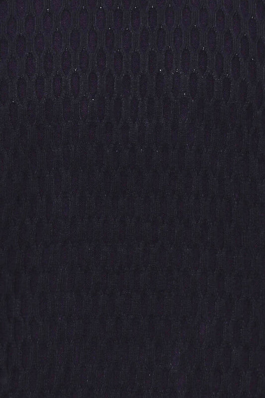 Navy Blue Crew Neck Embroidered Plain Knitwear
