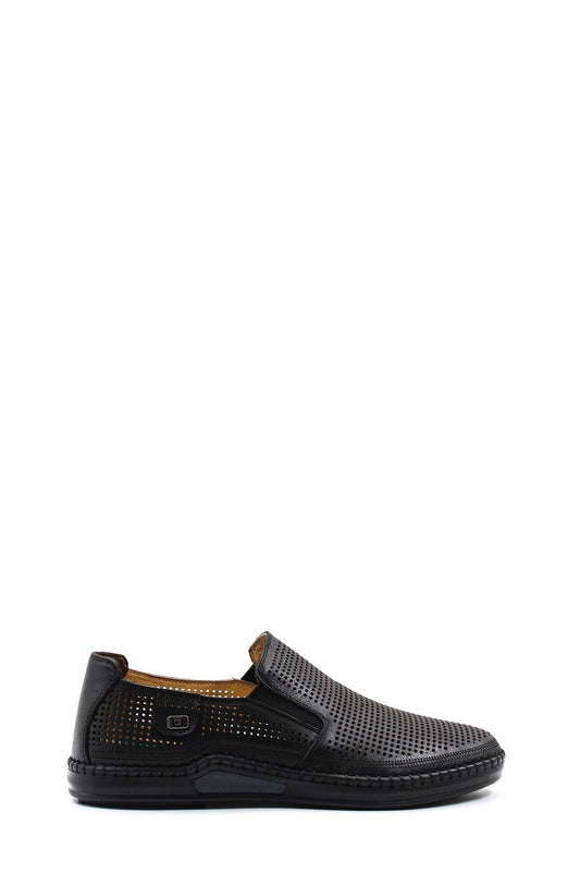 Black Perforated Slip-On Loafers-Wessi